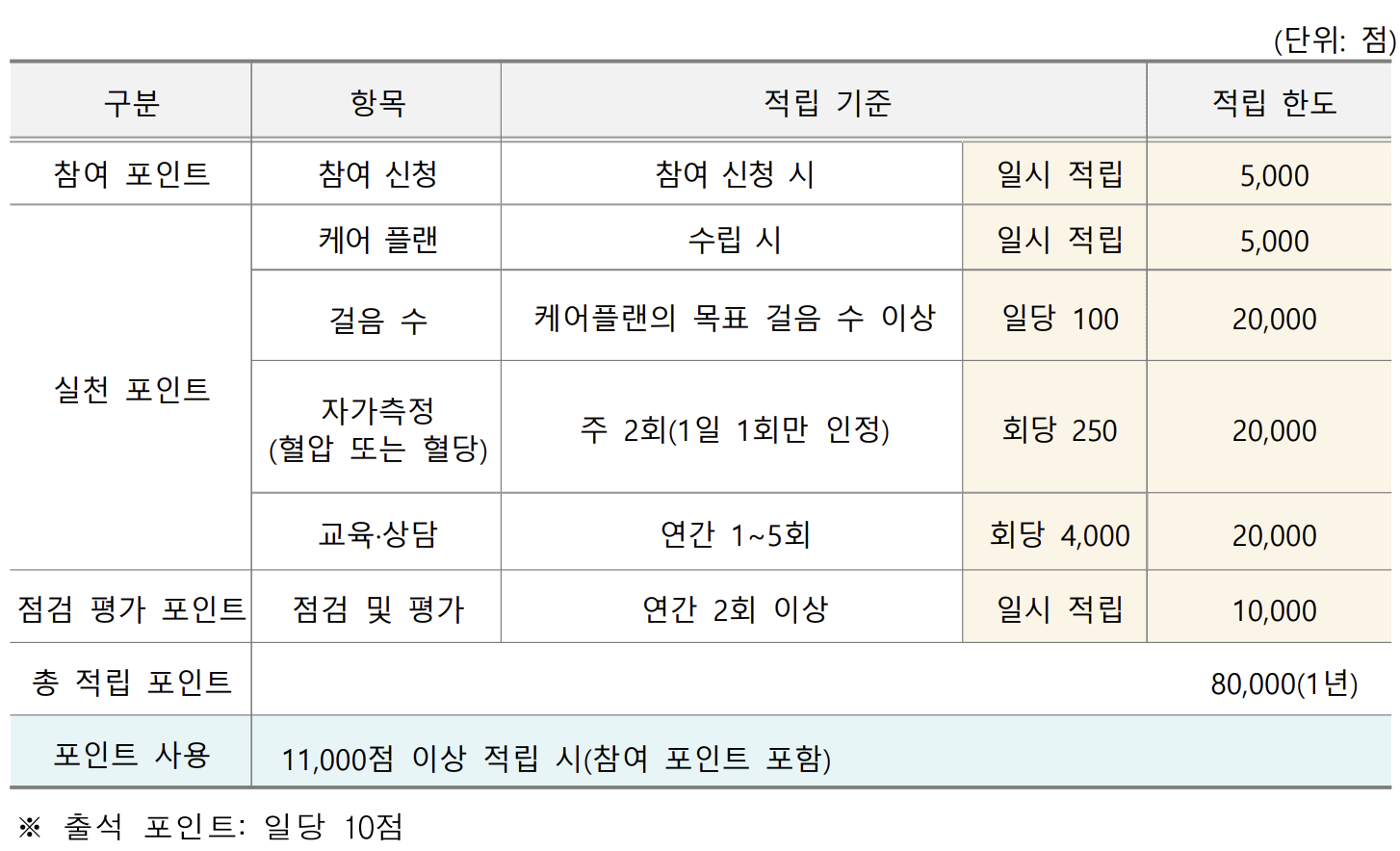 국민의 건강상태를 스스로 알 수 있도록 정보를 드리고, 개인이 주도적으로 건강생활을 실천하고 개선되는 정도에 따라 포인트를 지급하는 사업입니다. 시범사업에서는