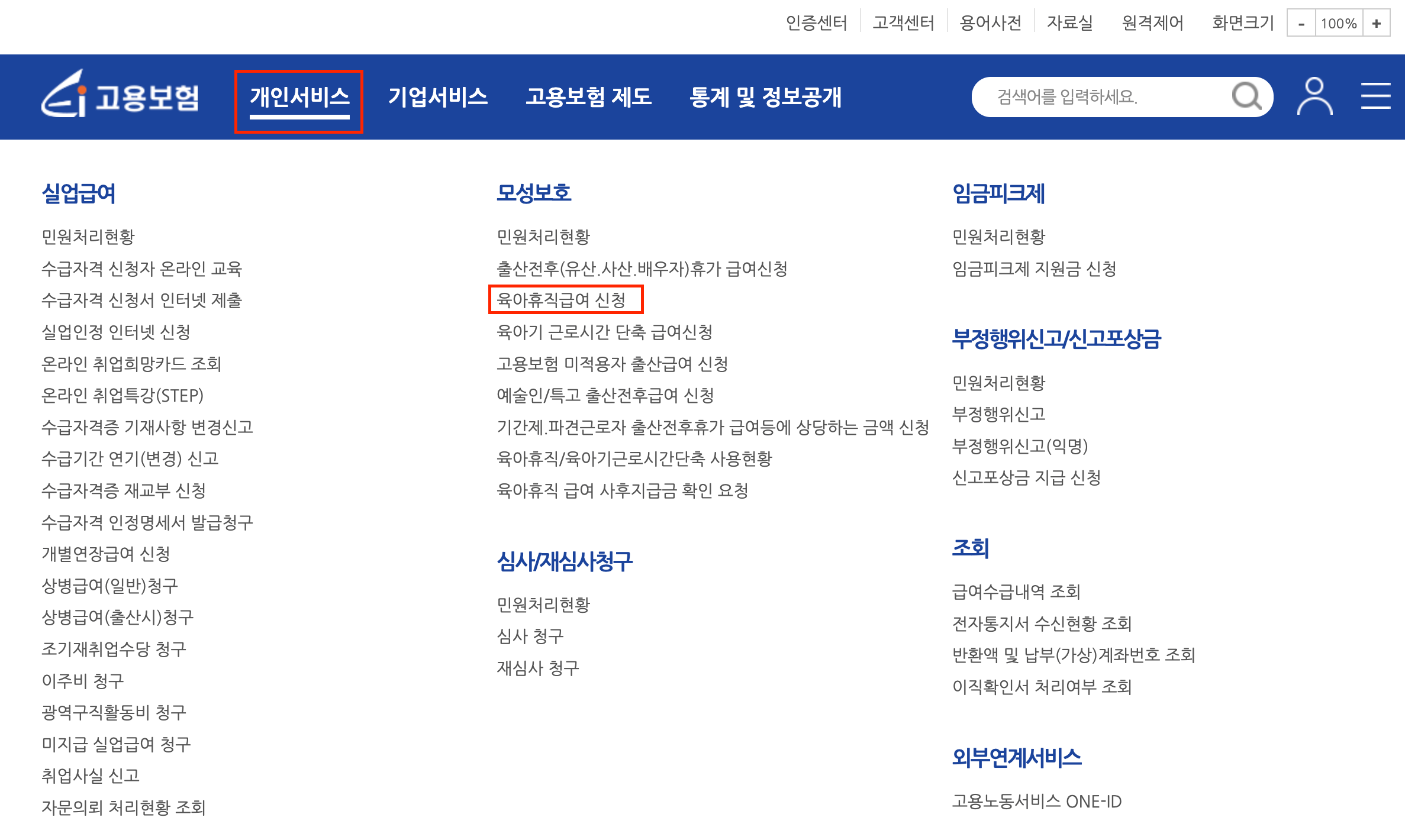육아휴직급여 신청하기에서 빠르게 신청할 수 잇습니다.